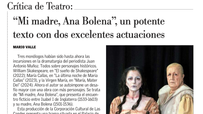 "Mi madre, Ana Bolena", un potente texto con dos excelentes actuaciones